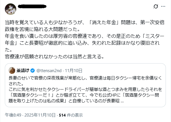 年金を食い潰したのは厚労省の官僚達であり、その是正のため「ミスター年金」こと長妻昭が徹底的に追い込み、失われた記録はかなり復旧された。