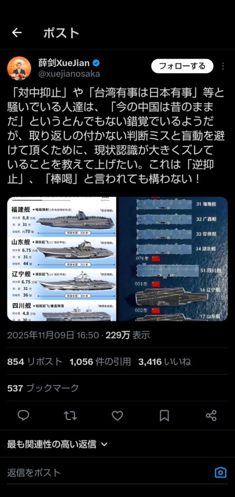 むしろ高市総理○害に言及した中共の大阪総領事を