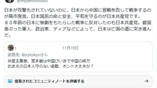 政治 欺瞞ですね まずは日本共産党の宮本徹のデマから。――宮本徹@miyamototooru日本が攻撃もされていないのに、日本から中国に宣戦布告して戦争するのが高市発言。日本国民の命と安全、平和を守るのが日本共産党です。80年前の日本に惨劇をもたらした戦争に... 2025.11.21 政治