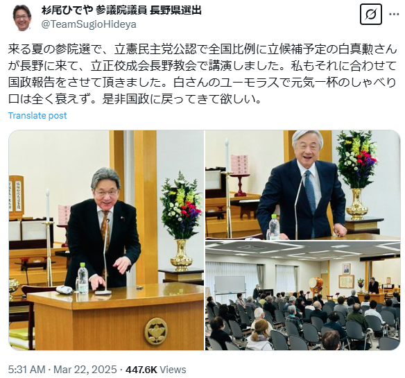このとおり杉尾秀哉もその組織票をあてにして活動してきた議員の1人ですし。