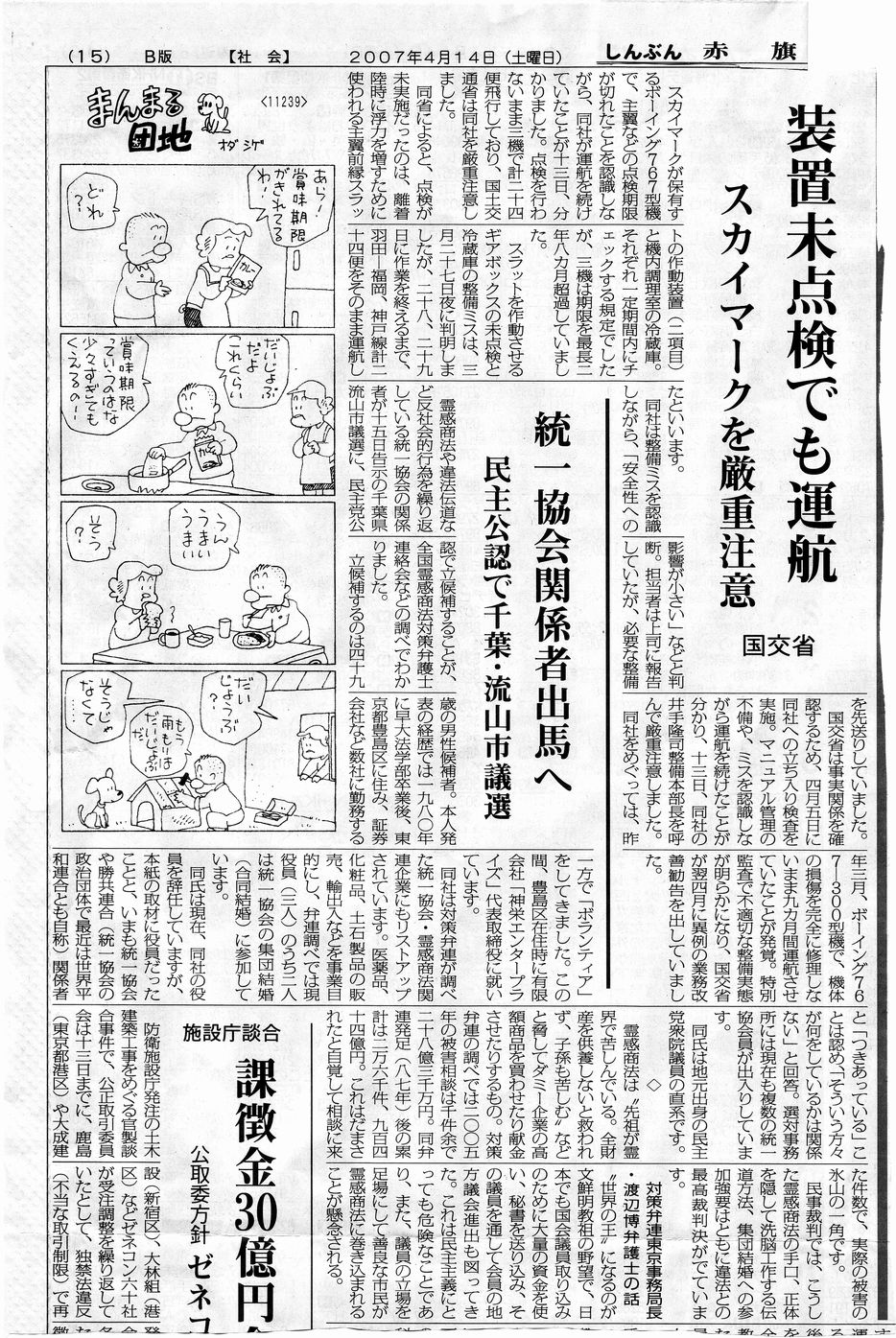 2007年4月14日のしんぶん赤旗の記事が以下。