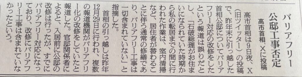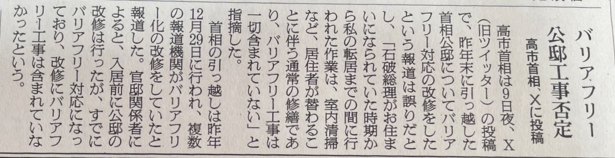 として高市総理の都合でバリアフリー改修が進められていたかのような内容にしていました。