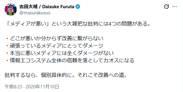 そこの古田大輔編集長のポストから。