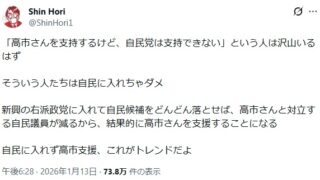 政治 その人の正体が表れるタイミングでもある いよいよ選挙なんだなとよくわかるXでのポストが出て来ましたでいくつか取り上げたいと思います。まずはウクライナから帰化したあの人から。――ナザレンコ・アンドリー @nippon_ukuraina解散はしてもいいと思う。と同時に、高市氏を応援し... 2026.01.15 政治