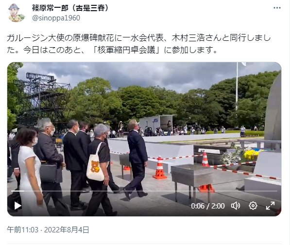 篠原常一郎は過去にSNSでこんな投稿をしていました。