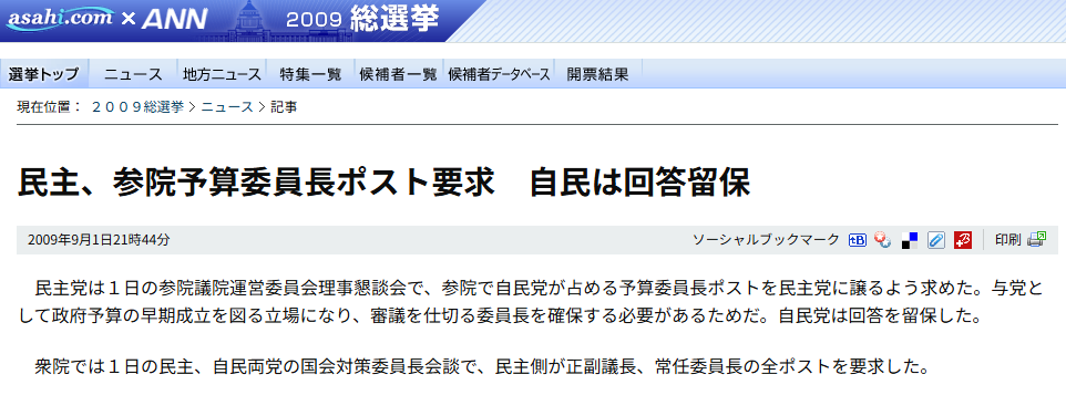 ここで2009年9月1日の朝日新聞の記事から引用しましょう。