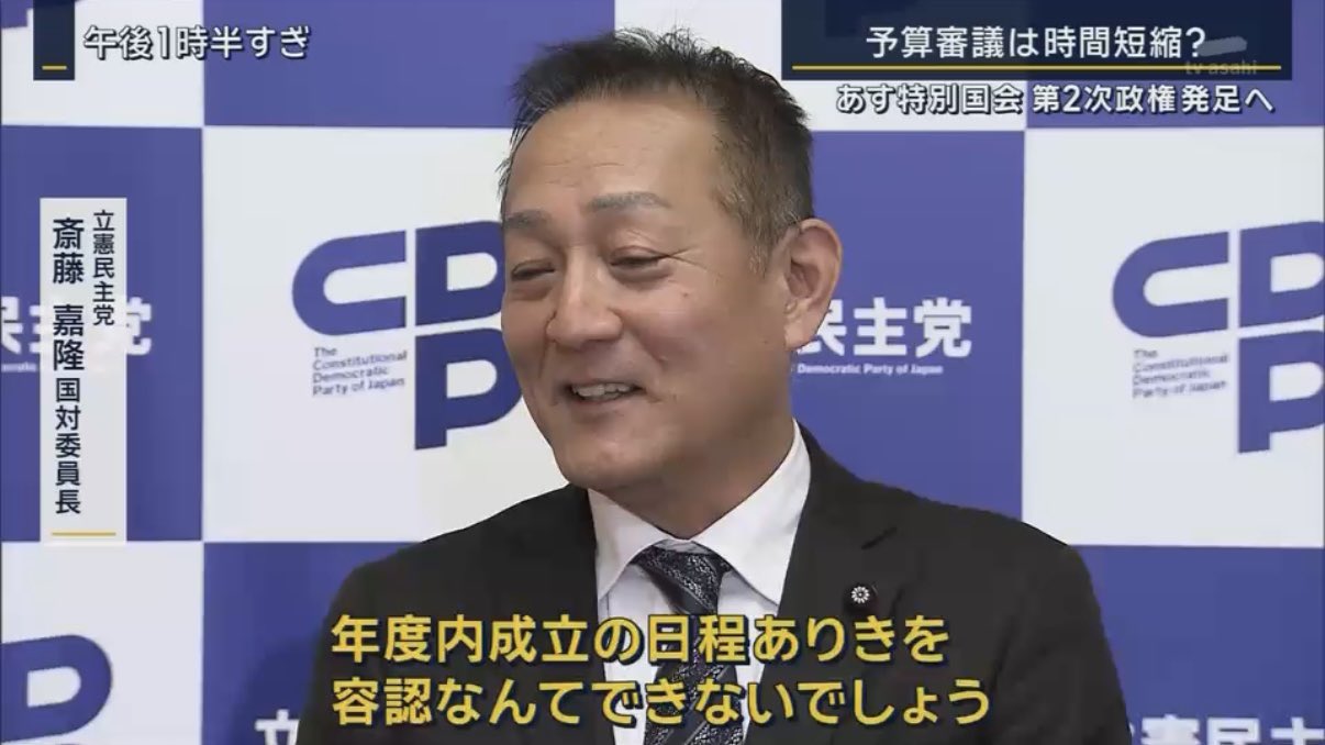 そして、斎藤氏は「年度内成立は現実的ではない」として、年度内に成立しない場合に備えて政府が暫定予算案を示すよう求めた。