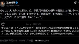 政治 落ち着いて考えればおかしいと気付く事ができるはずなのだけどね 先の衆議院選挙で落選したハッピーメール米山こと、中革連の米山隆一が新潟県知事選に意欲を出しているようです。国会議員に落ちたからちょうどいいのでまた新潟県知事やるか、みたいな態度で当選できるとは思えないのですけど、立民支持層が多い新潟ならまた... 2026.02.28 政治