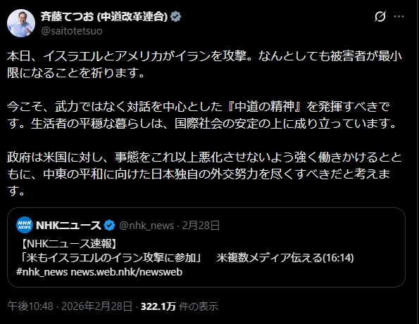 斉藤てつお (中道改革連合)@saitotetsuo