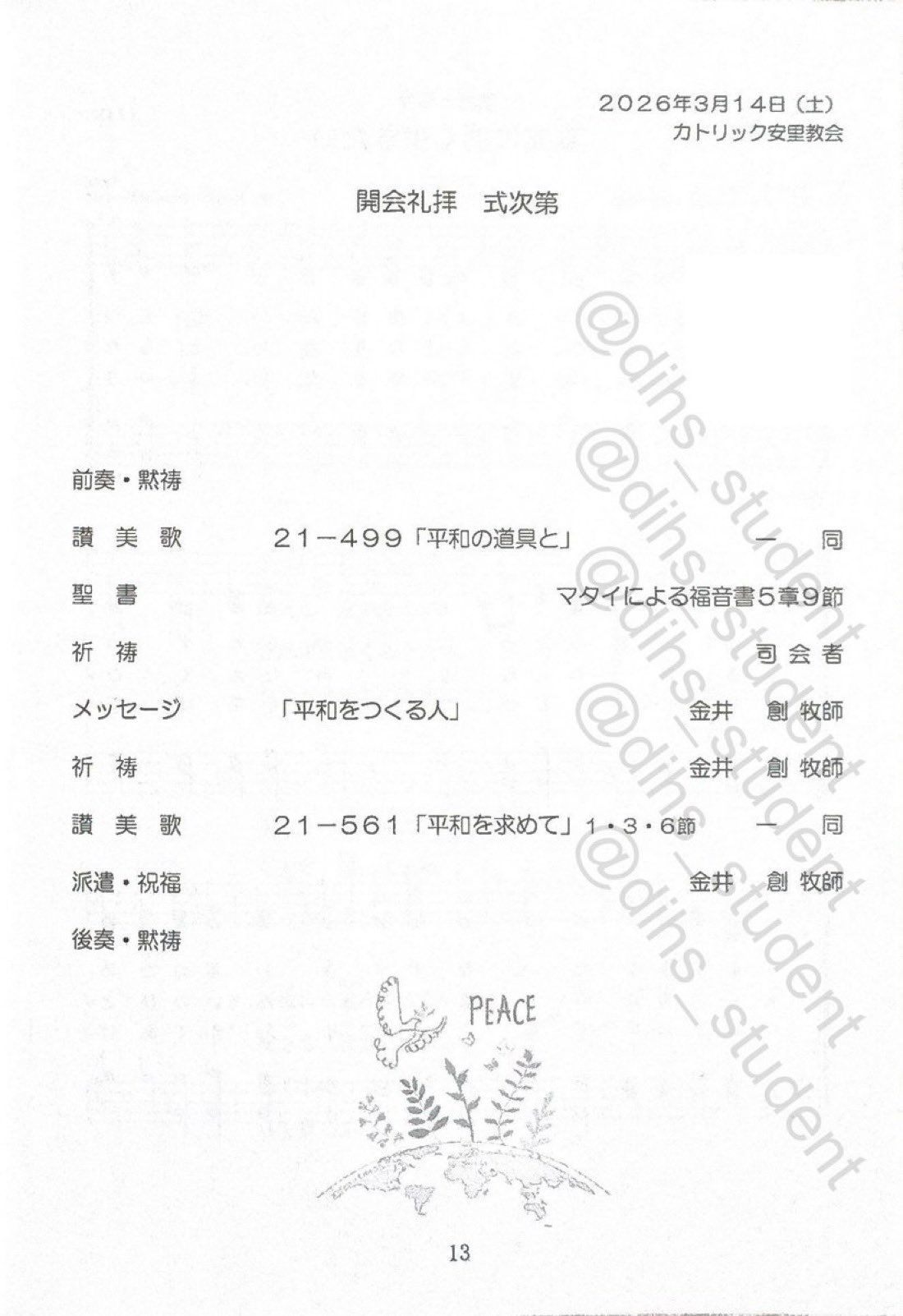 金井創はこの修学旅行の開会礼拝のメインゲストとなっていました。