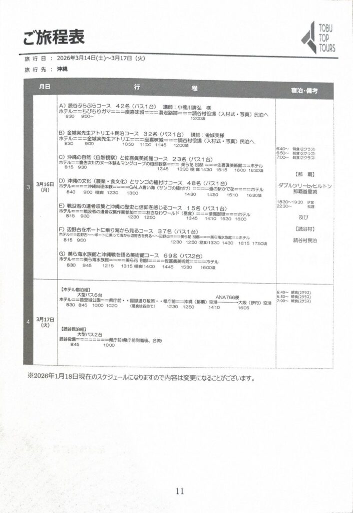 SNSでは同志社国際高校の修学旅行のしおりがアップされていました。