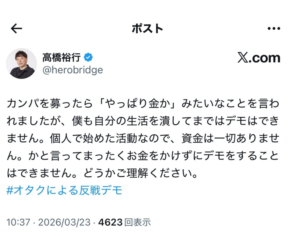 それでこのオタクによる反戦デモとやらは