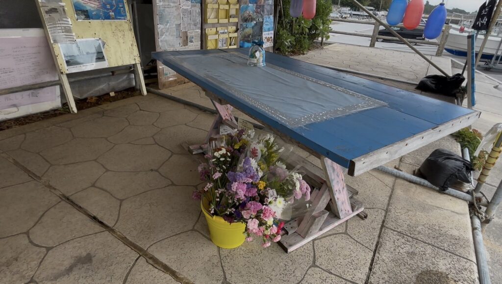 沖縄マスゴミの撮影と一緒のときは台の上に置いていた花を活けていたバケツは