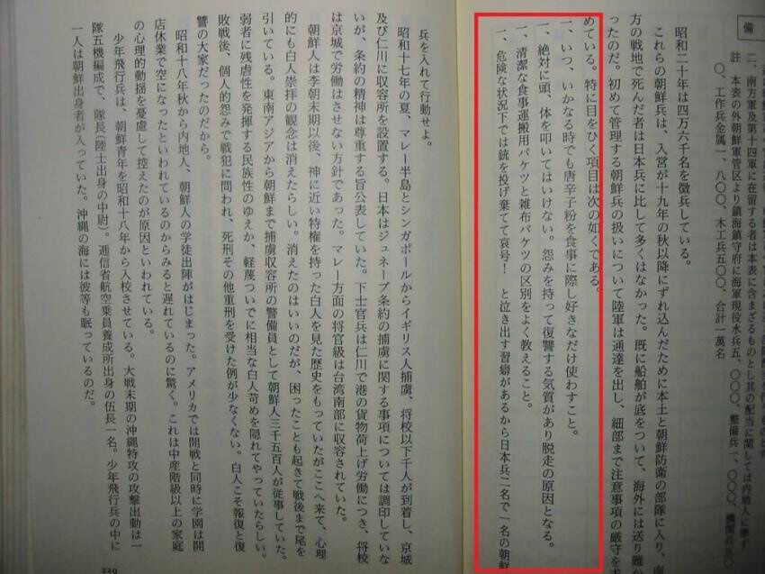 そこに日本陸軍の朝鮮兵に関する注意というものがありまして、