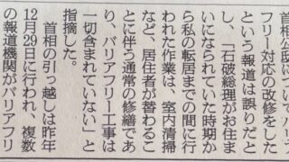 当ブログで1月11日に取り上げたマスゴミの「官邸のバリアフリー改修」のデマの件ですが、さすが捏造を常套手段としてきた朝日新聞はひと味違いました。朝日新聞はwebでは12月29日付けの記事で(リンク先はwebarchive)以下一部引用。――...